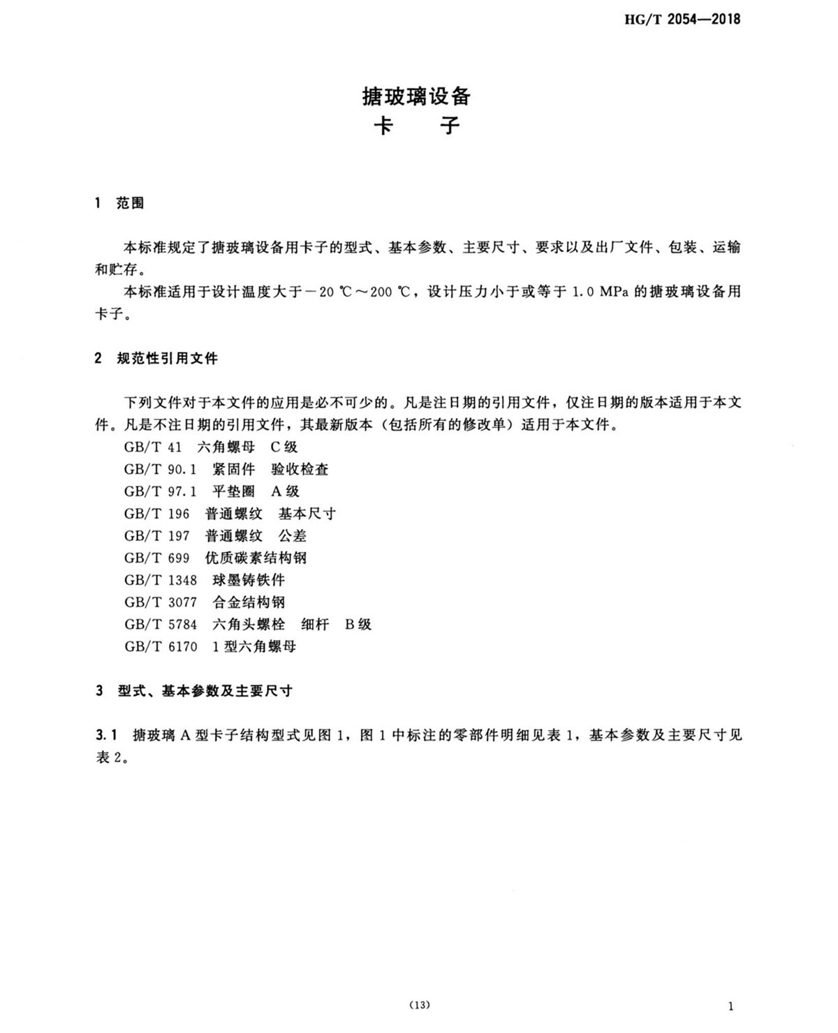 HGT2054-2018搪玻璃設(shè)備人孔法蘭和卡子