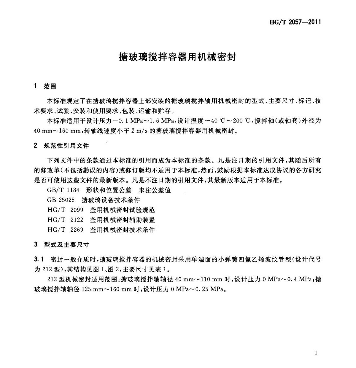 HGT2057-2011搪玻璃攪拌容器用機(jī)械密封