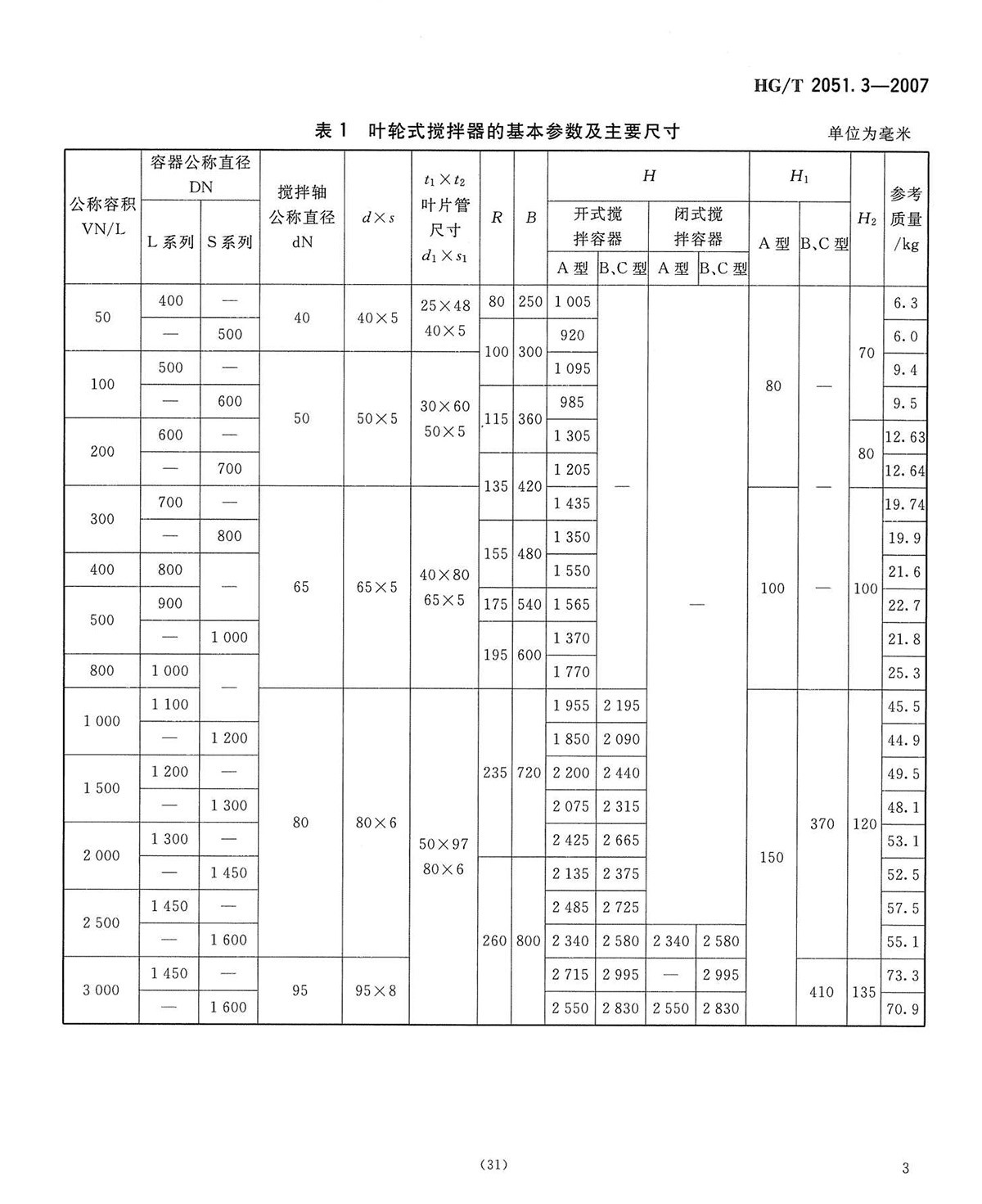 HGT2051.3-2007搪玻璃攪拌器葉輪式攪拌器